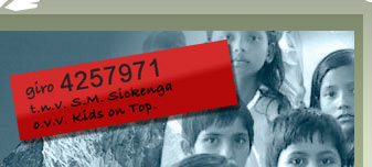 | Je kunt ons project steunen door een bijdrage te storten op giro: 4257971 t.n.v. S.M. Sickenga o.v.v. Kids on Top. Bij €25,- of meer krijgt u na afloop van het project een DVD. |